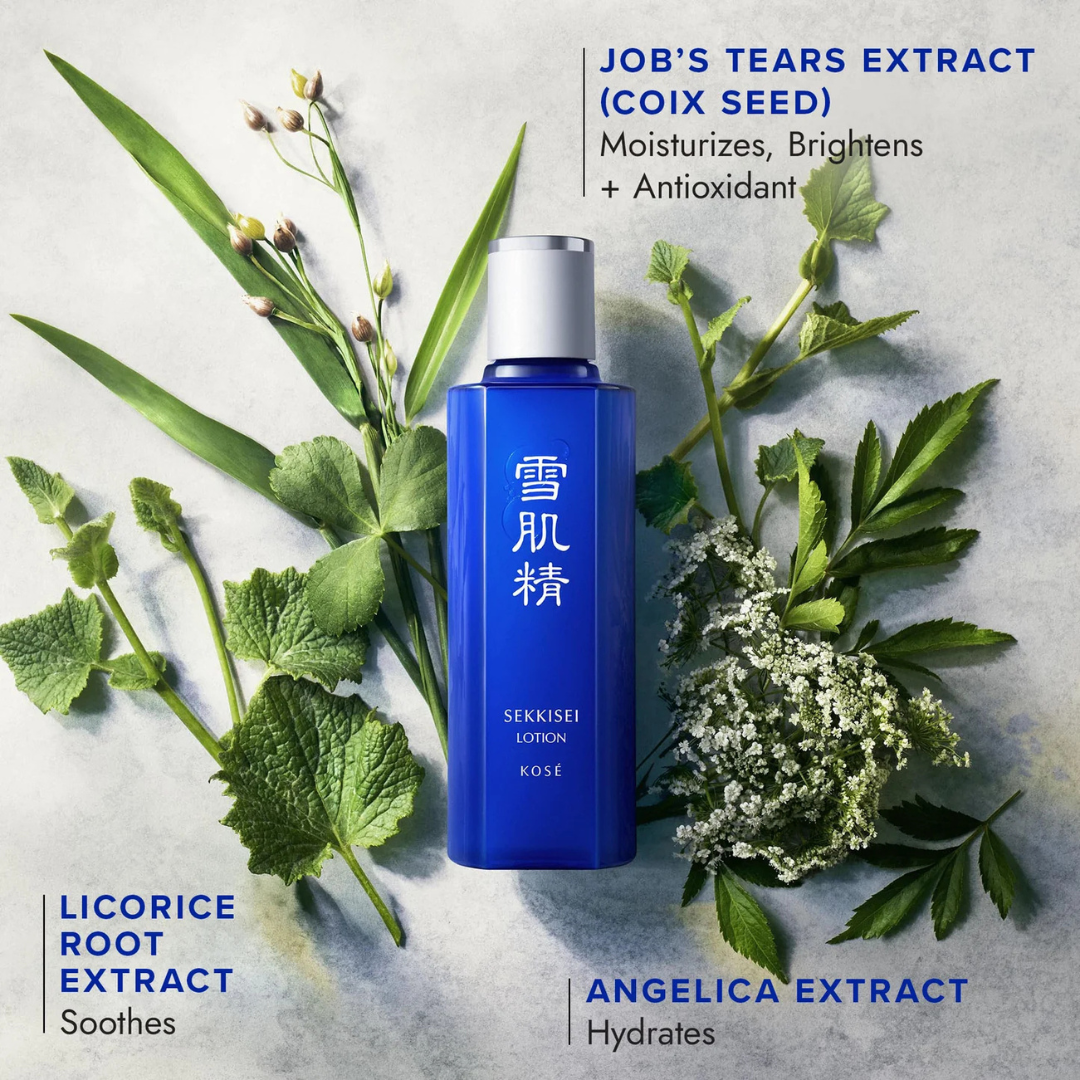 Discover Japan’s iconic hydration secret for clear, luminous skin. Beloved for decades, SEKKISEI Lotion is a refreshing, water-light lotion that floods skin with hydration while helping refine texture and boost radiance. This cult-favorite formula features a blend of traditional Asian botanical extracts, including Job’s Tears (Coix Seed), Angelica, and Licorice Root, known for supporting smoother, brighter-looking skin. Instantly cooling and fast-absorbing, it softens skin and preps it to better receive the rest of your skincare routine. Designed for daily use, SEKKISEI Lotion leaves skin feeling fresh, balanced, and visibly more luminous over time.
